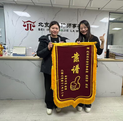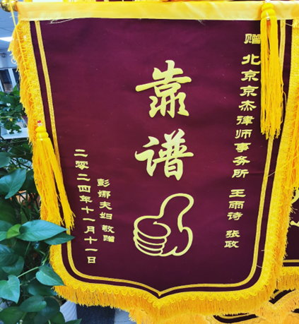 2024年1月11日,在北京市通州区,彭某与连某发生交通事故,彭某为无责。事故发生第二天当事人彭某便委托了京杰律所,事故造成当事人左胫骨平台骨折,当事人骨折程度较轻,并且选择保守治疗,未做手术,在伤残评定上极具争议。律师辗转多家鉴定机构,于法医不懈沟通,指导当事人如何完善医嘱。在事发6个月后,当事人伤情恢复基本稳定的情况下,进行了伤残鉴定。并在鉴定报告下发后,律师第一时间计算赔偿金额,与保险公司、责任方司机对接,最终在短短1个月内让当事人收到了满意的赔偿款。当事人百忙之中请假来到律所亲手献上锦旗表达感谢。