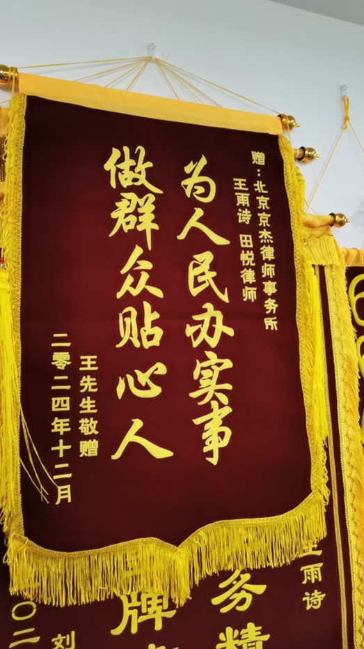 2024年6月24日,在北京市东城区,当事人王先生步行过程中被滴滴司机剐蹭撞伤,至腰椎L1压缩性骨折并行内固定术。7月委托京杰律所后,京杰律所的律师接到案子后分秒必争,第一时间联系保险公司免鉴定认可伤残,事发后仅2个月,在征求当事人的同意后快速与保险公司和解,拿到了交强险的满额赔偿,并同时联系滴滴平台沟通免鉴定赔付。最初司机不配合报案、滴滴拒赔,律师通过各种渠道与平台软硬兼施刚柔并济经过多轮的协商,事发后4月余,在当事人复查已无大碍、治疗终结后第一时间与滴滴公司和解,无需繁琐漫长的诉讼程序,滴滴平台完全认可了我方主张,当事人拿到了合理的满意的赔偿款,家属献上锦旗以表感谢。