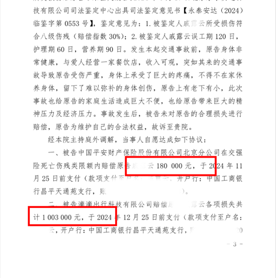 2023年11月1日戚某与毛某在北京市昌平区发生交通事故,毛某为滴滴司机,发生事故时正处于接单状态。戚某多次和对方沟通无果,且保险公司拒绝和解。此前,戚某曾委托一家律师事务所,几个月仍没有任何进展,最终经多方咨询介绍,于2024年6月1日委托北京京杰律师事务所,京杰律师介入之后,成立专案组,制定诉讼方案,为了案件快速进展,选择诉前做鉴定,戚某评定为8级伤残,庭审中,滴滴公司不认可事故责任、不认可伤残等级、不认可父母的被扶养人生活费,经过律师庭审积极辩论,滴滴公司由最初的愿意赔偿40多万,到最终赔偿1003000元,由保险公司在交强险份额内赔偿18.2万元,最终赔偿近120万元!