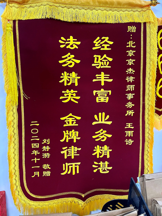 2023年8月,在北京市朝阳区,当事人刘某与杨某发生交通事故,刘某无责。当事人经过2个月的选择与考虑,慎重选择委托了京杰律所。当事人的髋部骨折,作为未婚未育的年轻女孩,当事人在律师的建议下选择诉讼保障自身权益,避免后遗症遗留问题无法得到全面处理。律师尽职尽责为每一项主张提供全面证据支持,一遍遍不惮其烦地指导当事人配合提供。最终判决下发,金额全部支持,且精神损害抚慰金10级伤残支持10000元,被告承担全部诉讼费。当事人对结果非常惊喜,主动送上锦旗以表感谢。
