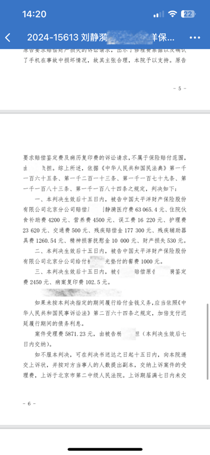 女孩交通事故导致骨盆受伤 判决金额与主张金额完全一致,完全胜诉。